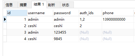 没错,如我们所想,count大于1的即是 username 为 admin 和 ceshi 的数据。